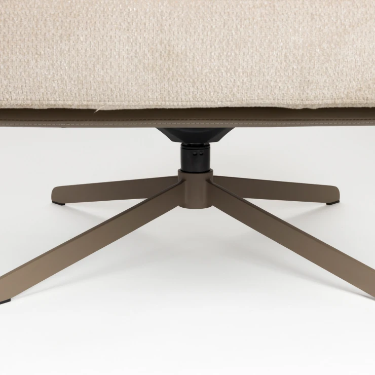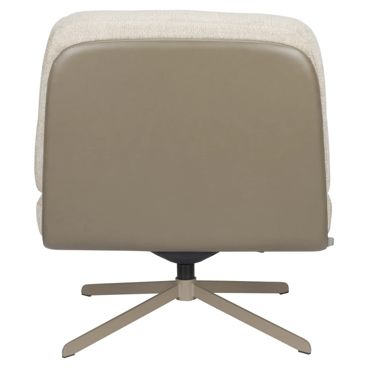 • Fåtölj Benjamin är skapad för stunder av avkoppling. Sjunk ner i de tjocka sitt- och ryggkuddarna som är generöst stoppade och underbart mjuka. Kuddarna är klädda i mjukt tyg och hålls på plats tack vare kardborrefäste mot sitsen. Kombinationen av den mjuka cremefärgen, den naturliga tonen i den konstläderklädda sitsen och det snurrbara underredet ger stolen en avslappnad men stilfull look.