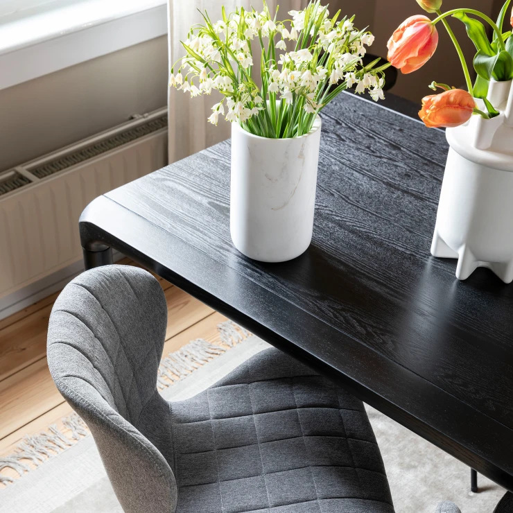 • - Tillverkat med massiva askben som flyter samman med bordsskivan i fanerad ask