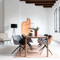 • Har du sett de konstnärligt utformade benen i askträ som verkar flyta ut från bordsskivan? Behöver vi säga mer?