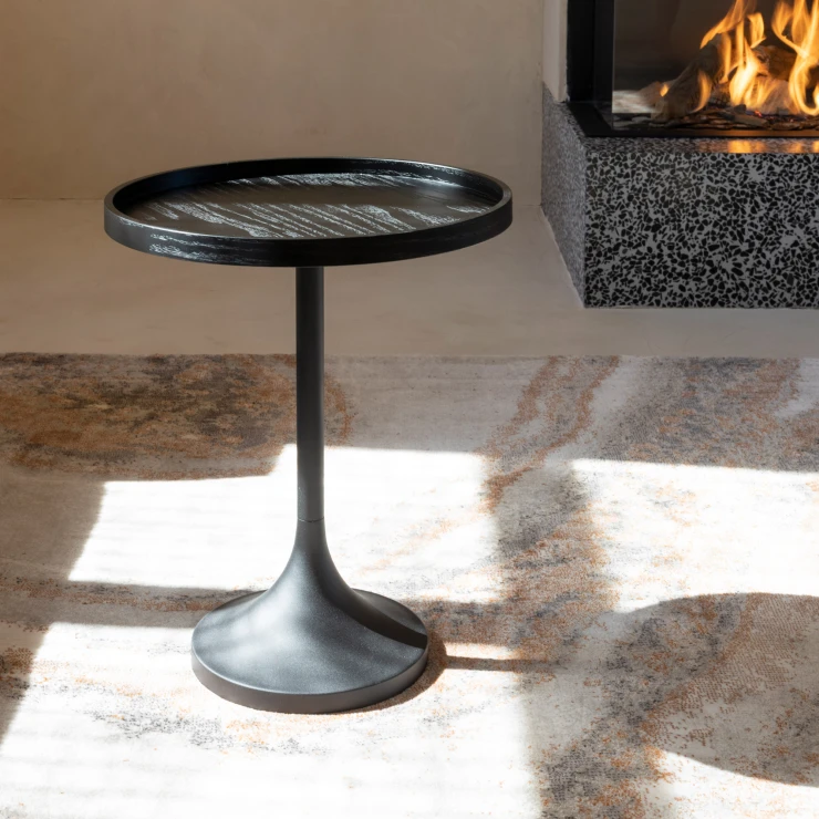 • Här kommer sidobordet Jason! Denna mindre version av vårt populära soffbord Jason är lika fantastisk. Det är samma hemliga kombination av svart pulverlackad stål och svart ekfanér som gör jobbet.