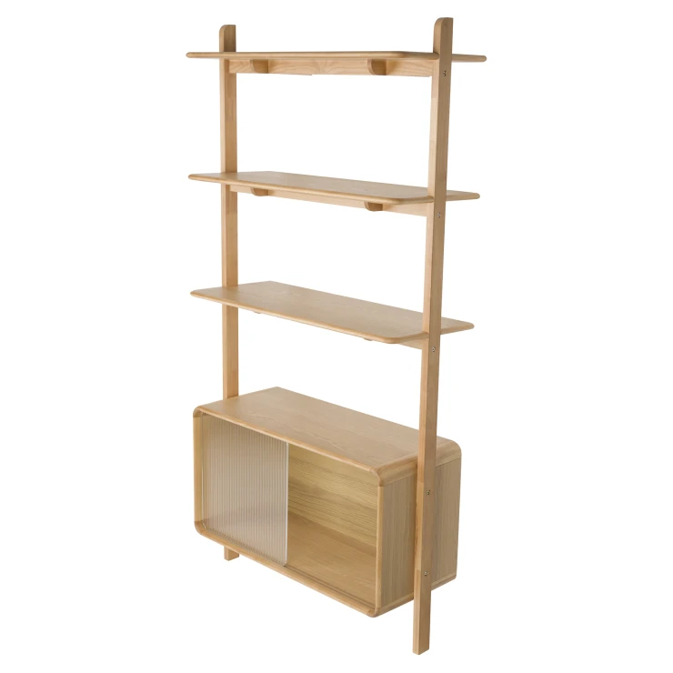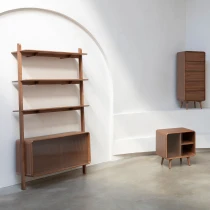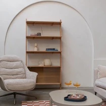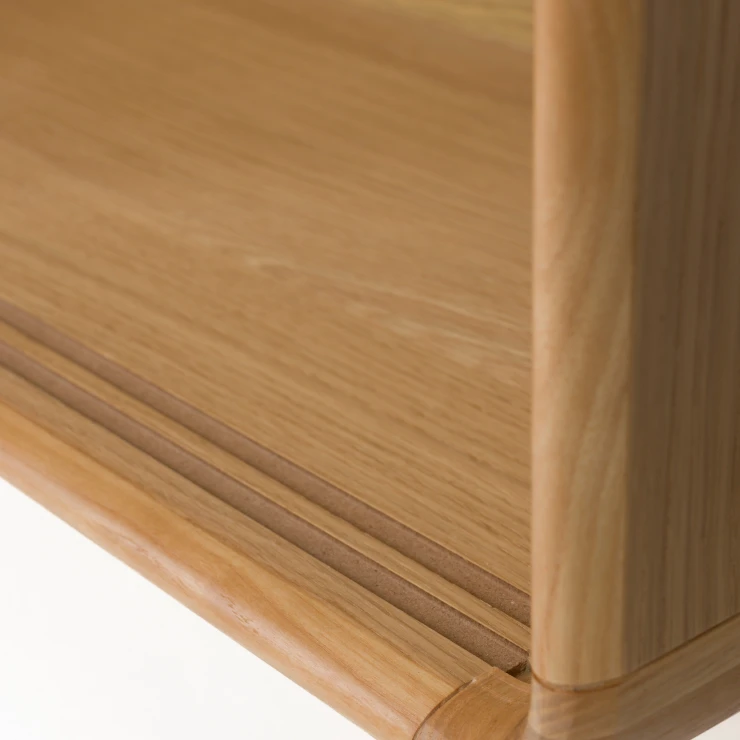 • Rise-serien – med byrå, väggskåp och sängbord – lyfter atmosfären i vilket rum som helst till nya höjder. De rundade linjerna fångar genast blicken, medan den räfflade glasskjutdörren tillför en lekfull detalj i väggskåpet och sängbordet. Serien finns i två eleganta utföranden: ljus ek eller varm valnöt.