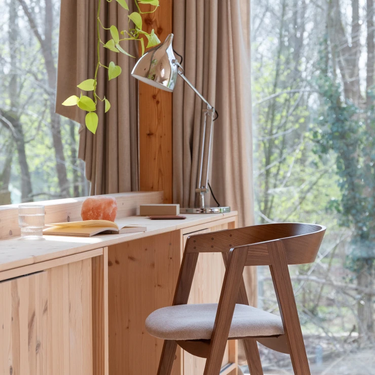 • - Tillverkad i massivt askträ och askfaner med valnötsfärgad finish