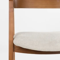 • Är du också förtjust i Mads? Det är knappast förvånande. Denna stilfulla stol tillför enkelt en ombonad känsla i matsalen. De massiva ekstolsbenen övergår sömlöst i det perfekt rundade ryggstödet, och tillsammans med den klädda sitsen skapas en exceptionell komfort. Som pricken över i tillför kontrasten mellan det ljusa tyget och den djupa valnötsfärgen en iögonfallande effekt.