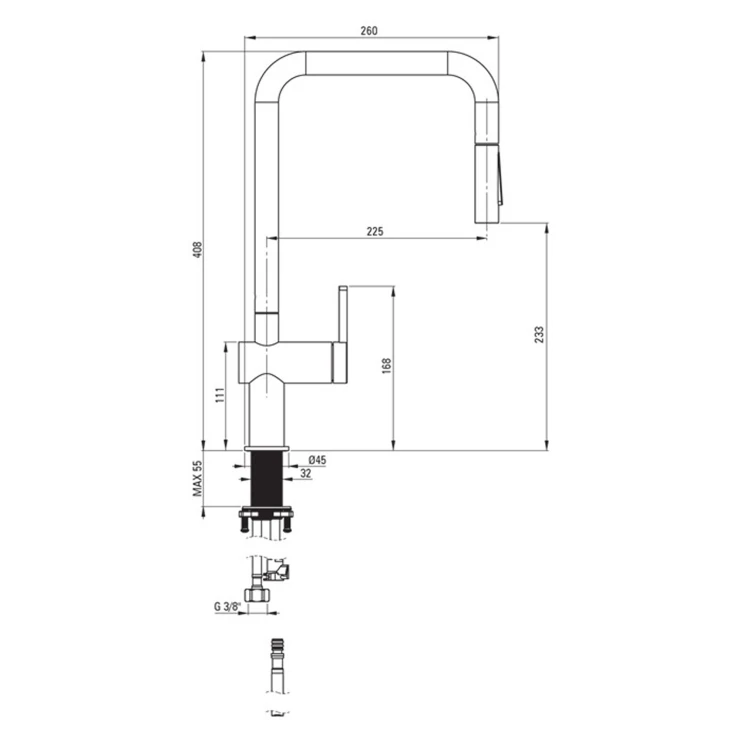 Köksblandare med Rektangulär U-Pip Momi Svart Matt