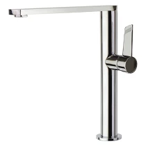 En ettgrepps köksblandare med hög pip och 360° svängbar funktion, utformad med raka linjer för ett modernt och stilrent uttryck. Den keramiska insatsen Ø25 mm ger mjuk, exakt och stabil reglering av både temperatur och flöde. Ytan är utförd i krom med 15 mikron nickel och 0,3 mikron krom för hög slitstyrka och långvarigt motstånd mot korrosion.