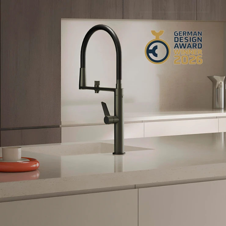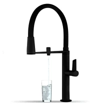 En professionell ettgrepps köksblandare med separat krets för renat vatten, vilket gör det möjligt att använda både vanligt och filtrerat vatten i samma armatur. Blandaren är utrustad med en keramisk insats Ø25 mm som ger mjuk, stabil och exakt reglering av temperatur och vattenflöde.