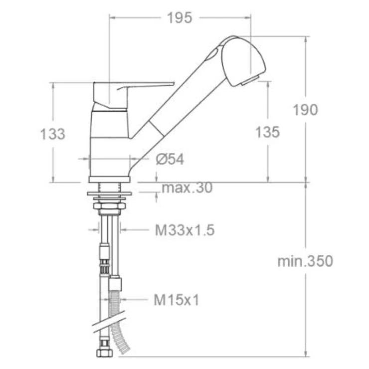 Köksblandare Vorno Krom Blank med Utdragbar Pip