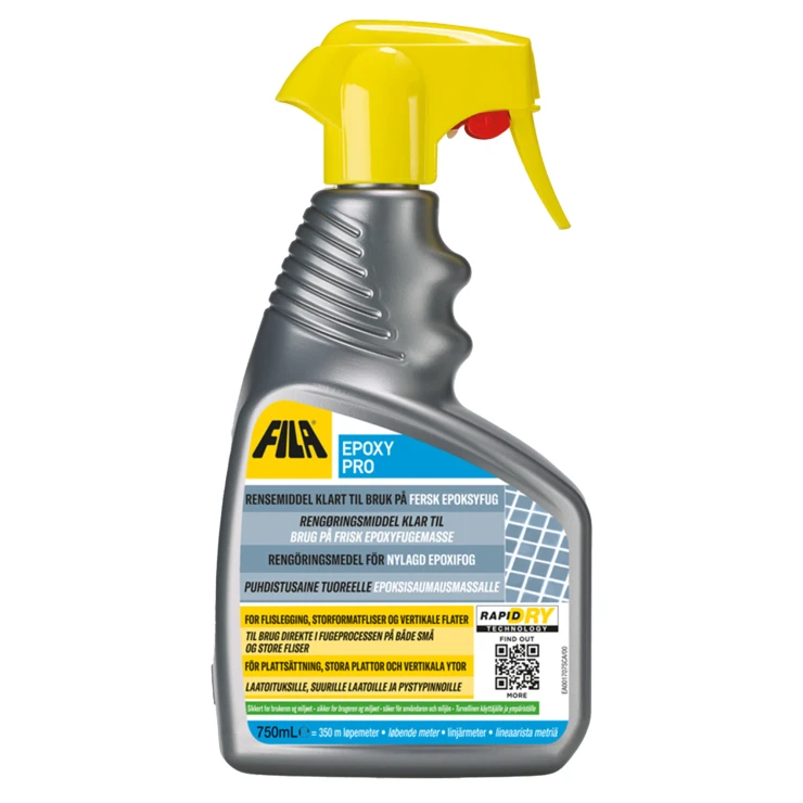 Rengöringsmedel speciellt framtaget för att avlägsna färska epoxifogrester. Produkten kan användas både på golv och väggar, inomhus och utomhus, utan att skada fogar, aluminium- eller ståldetaljer. Den avger inga skadliga ångor, skummar inte och behöver inte sköljas bort.