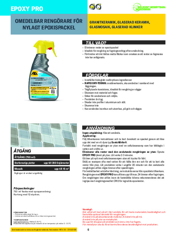 • Effektiv borttagning av epoxirester utan att påverka underlaget.