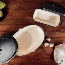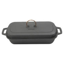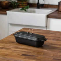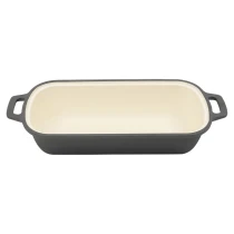 • Kombinerar den lätta hanteringen av en slät, non-stick emaljyta med den robusta hållbarheten hos gjutjärn på utsidan. Flytta den enkelt från kök till grill eller öppen eld – denna form är byggd för alla tillagningsmetoder och är lika vacker som den är funktionell.