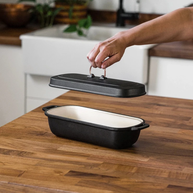 • Med raka kanter och plan botten är den perfekt för att baka bröd i klassisk form – men användningsområdet är mycket bredare. Formen passar lika bra för köttfärsrätter, sockerkakor, långa grönsaker eller personliga deep dish-pizzor. Vad du än hittar på i köket – den här formen klarar det.