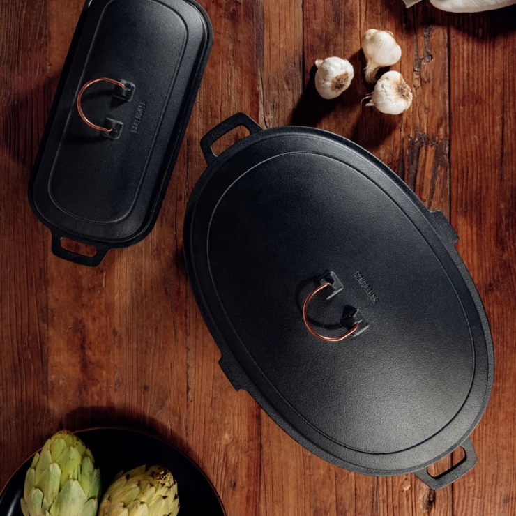 • Emaljerad insida. Gjutjärnsutsida. Världens mest mångsidiga emaljerade gjutjärnsform.