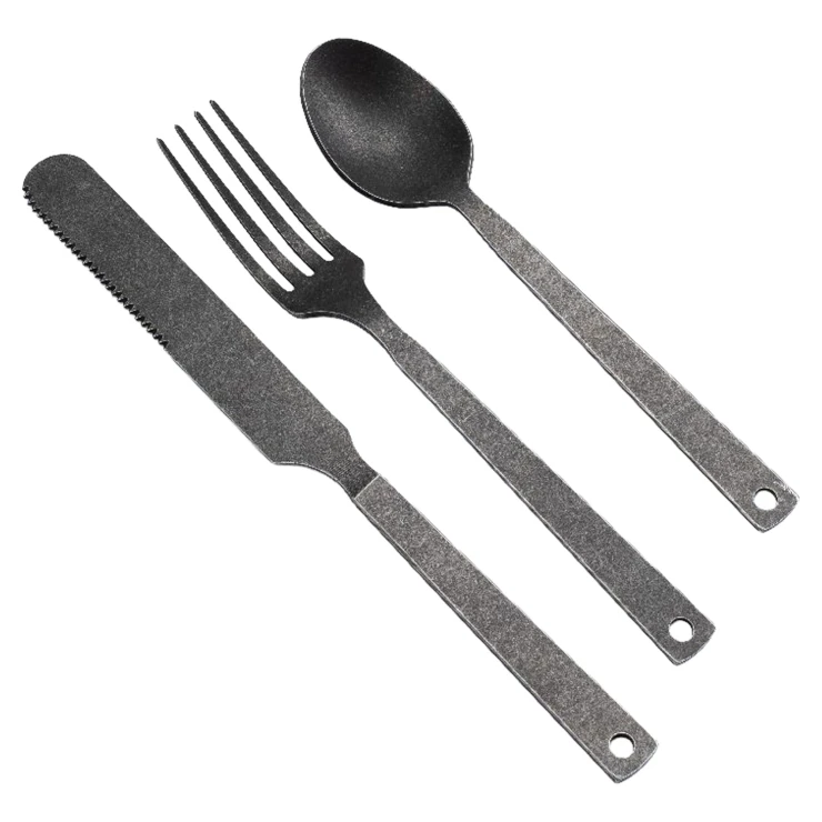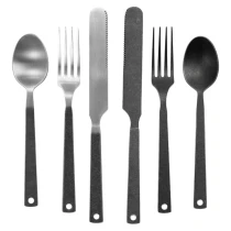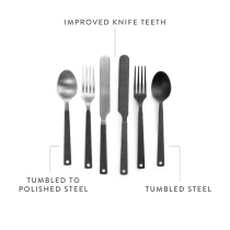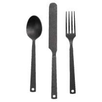 • Ge dukningen ett nytt lyft med detta stilrena och moderna bestickset. Den unika designen kombinerar elegans och funktion – perfekt för camping, lantlig grillning eller som ett extra set för middagar hemma. Kniven är tillräckligt vass för att enkelt skära en biff, medan den balanserade formen gör besticken bekväma att använda varje dag.