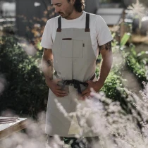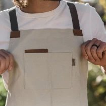 • Mångsidigt förkläde i kraftig canvas – den perfekta följeslagaren för matlagning, grillning, trädgårdsarbete och hantverk. Tillverkat i slitstark bomullscanvas med detaljer i äkta kohud och metallspännen, vilket gör det extra tåligt mot slitage och daglig användning.