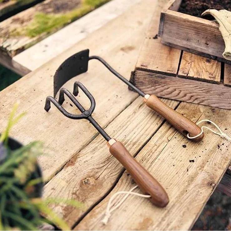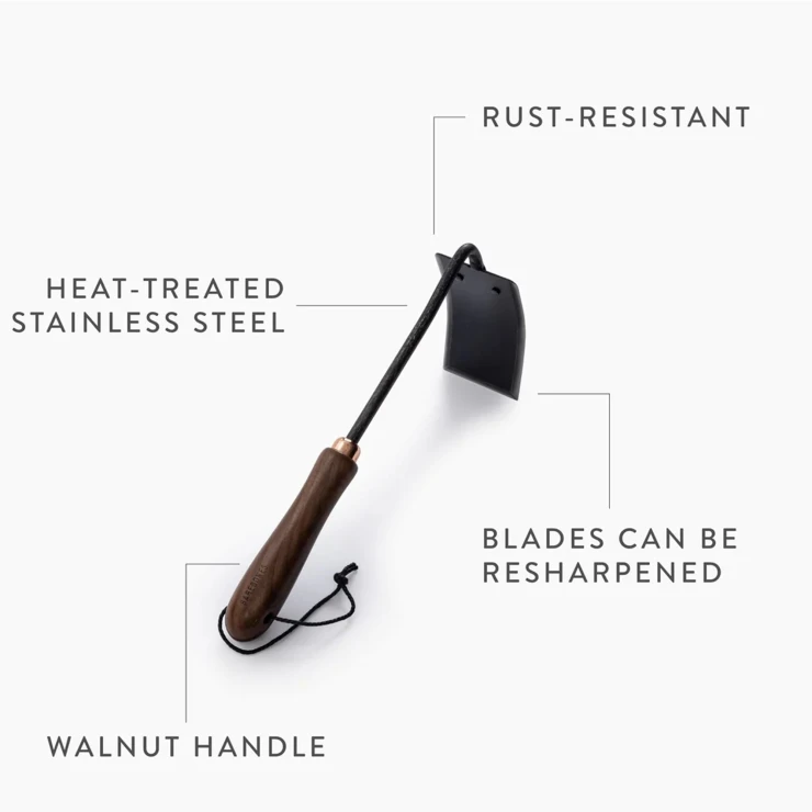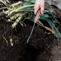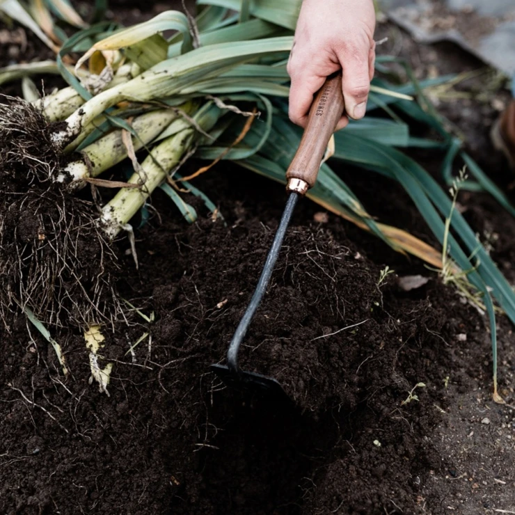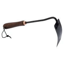 • Den fyrkantiga hackan är utformad för att klara de mest krävande trädgårdsuppgifterna. Den skär igenom envisa rötter, bryter upp hård och torkad jord samt förbereder marken för plantering. Det lätt böjda bladet gör den perfekt för rensning, grävning och markbearbetning, medan det ergonomiska handtaget ger ett bekvämt och naturligt grepp.