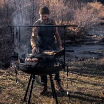 • Barebones Extra Grillgaller till  Eldskål med Grillset Cowboy Svart – utvecklat tillsammans med Barebones open-fire-kockar för att utöka din matlagningsyta och ge ännu fler möjligheter vid grillen. Perfekt för att grilla hamburgare, grönsaker, fisk eller rosta extra bröd när du lagar mat till ett större sällskap. Det stabila stålgallret är höjdjusterbart och låsbart, vilket ger exakt kontroll över värmen oavsett vad du tillagar.