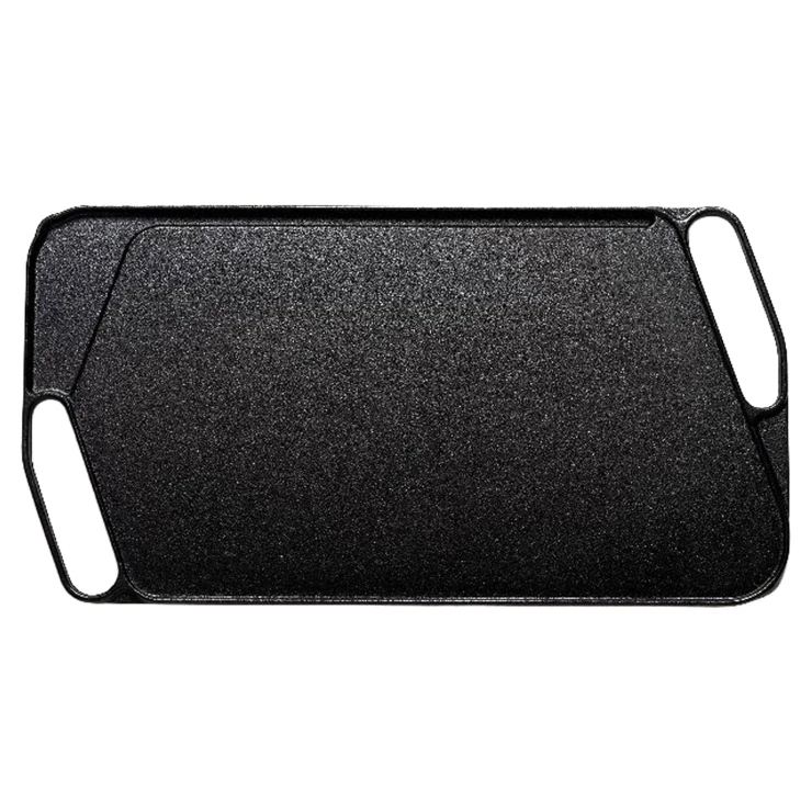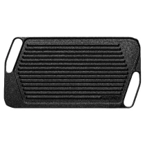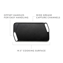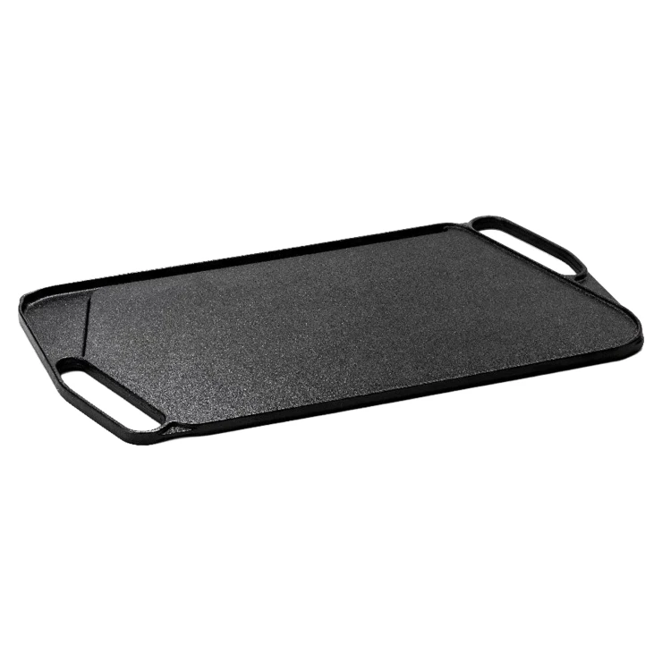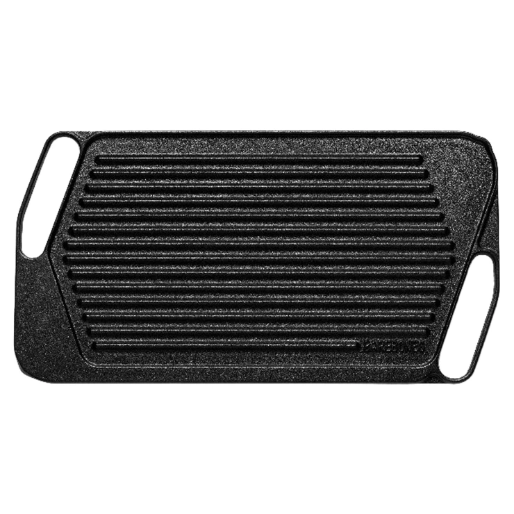 • Vändbar grillplatta i gjutjärn – perfekt när du lagar mat för flera personer. Använd den släta sidan för ägg, fiskkakor och fajitas, och vänd till grillsidan för hamburgare, grönsaker eller grillspett. Den naturligt non-stick-behandlade gjutjärnsytan fördelar värmen jämnt för perfekt tillagning varje gång.