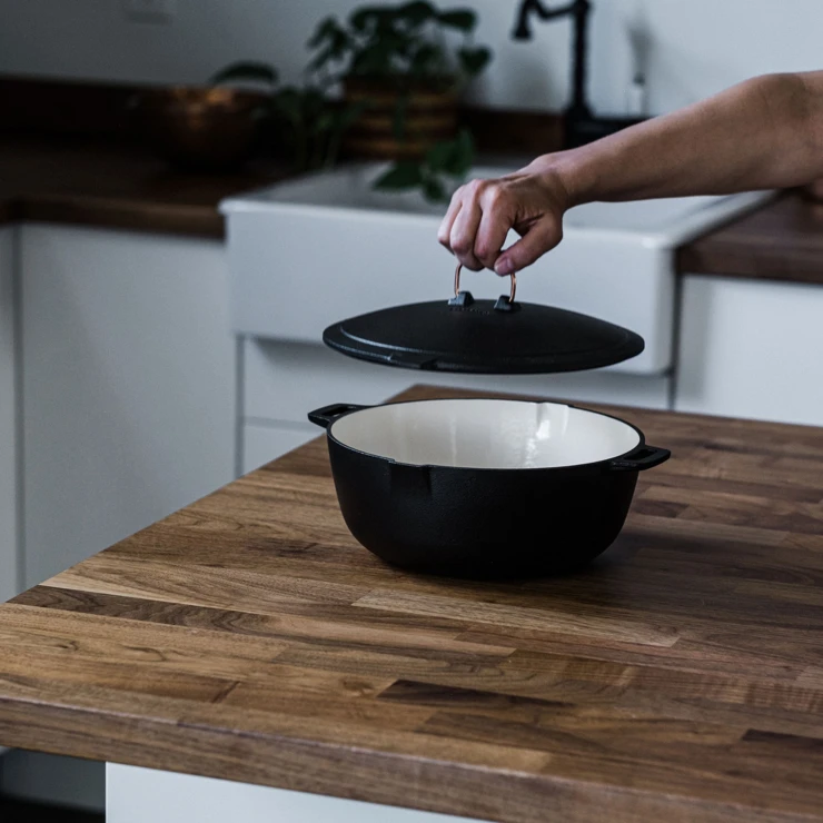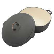 • Emaljerad insida. Gjutjärnsutsida. Världens mest mångsidiga emaljerade gjutjärnsgryta.