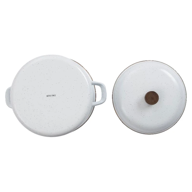 • Den högkvalitativa stålkärnan med emaljerad, spräcklig finish är både tålig och lätt att rengöra. FSC-certifierade detaljer i naturligt valnöt ger ett varmt och exklusivt intryck. En gryta som passar lika bra i det moderna hemmet som vid utomhusmatlagning under öppen himmel.