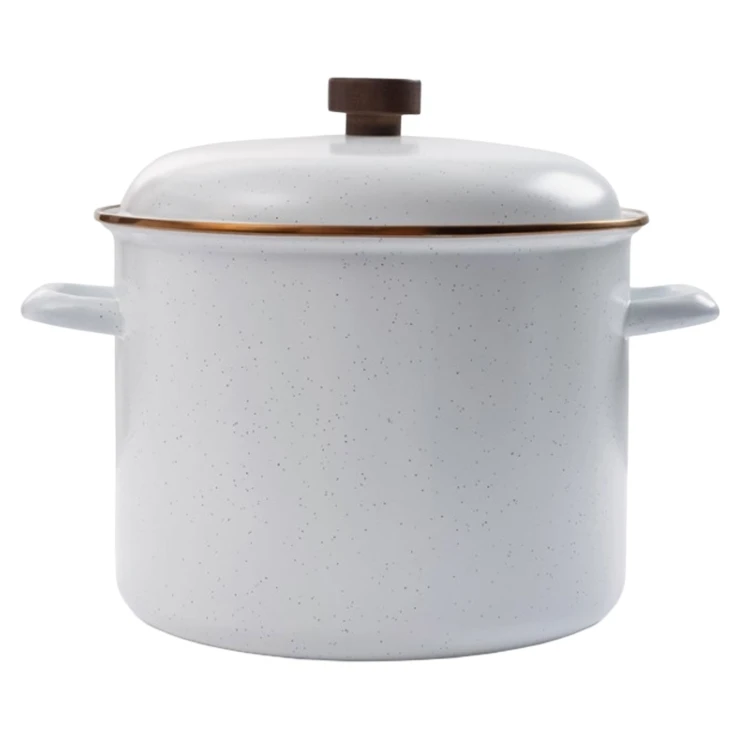 • En klassisk gryta i tidlös design – perfekt för att koka pasta, grönsaker, soppor, grytor och chiligrytor. Den är lika sofistikerad i köket som praktisk vid camping och är tillverkad med en handfinish som kombinerar elegans och hållbarhet. Den bakade rostfria stålkanten skapar en vacker bronsliknande patina som förstärker dess vintagekaraktär.