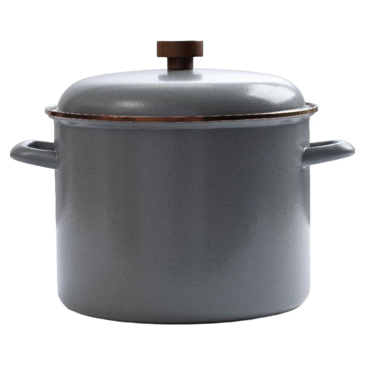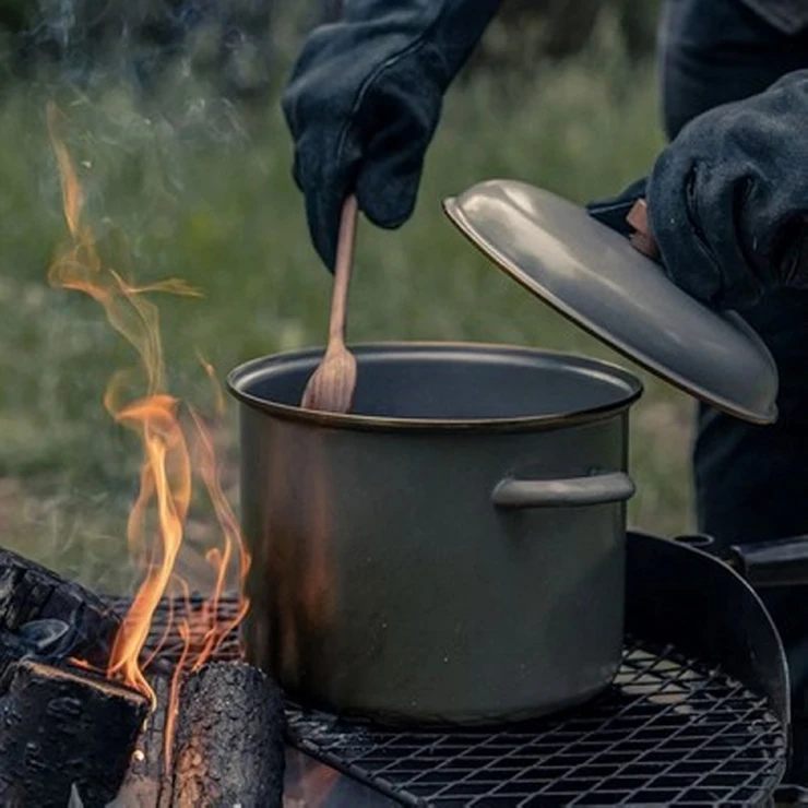 • En klassisk gryta i tidlös design – perfekt för att koka pasta, grönsaker, soppor, grytor och chiligrytor. Den är lika sofistikerad i köket som praktisk vid camping och är tillverkad med en handfinish som kombinerar elegans och hållbarhet. Den bakade rostfria stålkanten skapar en vacker bronsliknande patina som förstärker dess vintagekaraktär.