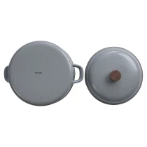 • Den högkvalitativa stålkärnan med emaljerad, spräcklig finish är både tålig och lätt att rengöra. FSC-certifierade detaljer i naturligt valnöt ger ett varmt och exklusivt intryck. En gryta som passar lika bra i det moderna hemmet som vid utomhusmatlagning under öppen himmel.