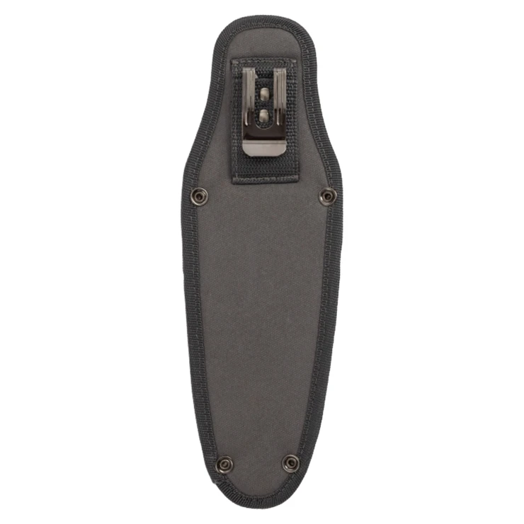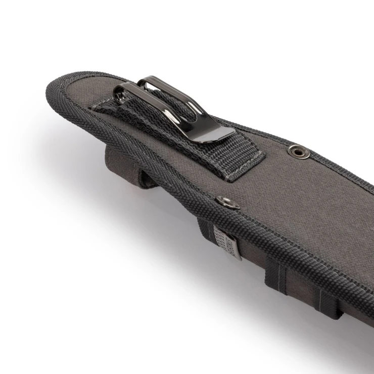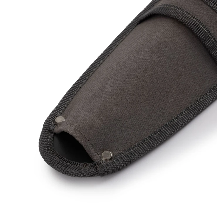 • Det starka materialet i 900D polyester tål daglig användning och skyddar bladet från slitage och förstumpning. Den rostfria bältklämman ger enkel tillgänglighet, medan den öppna nederdelen gör det lätt att rengöra och förhindrar att jord byggs upp i fodralet. En elegant kopparfärgad knäppning och kraftiga nitar ger både styrka och stil.