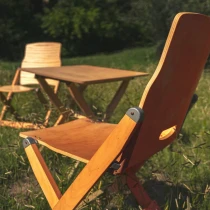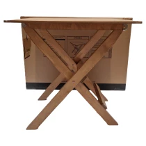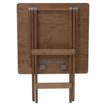 • Bordet har en vacker honungsfärgad bets och en skyddande satinklart lack som gör det motståndskraftigt mot fukt och spill. Tack vare den stabila konstruktionen och hopfällbara designen är det enkelt att förvara och transportera – perfekt för camping, uteplatser eller som ett stilfullt extra bord vid måltider.