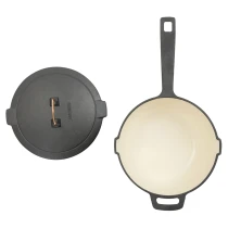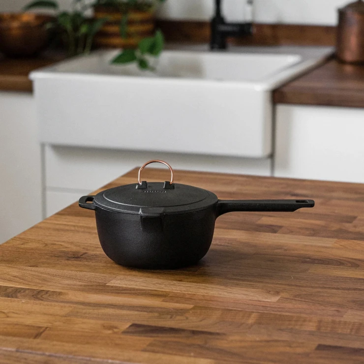 • Det här är ett köksredskap du inte visste att du saknade. Använd den på spisen, grillen eller direkt över elden för att värma soppor, såser och andra rätter. Den passar också utmärkt för att sjuda ingredienser långsamt eller baka vackra quicher och små kakor. Perfekt även för barnens favoriter som makaroner och ost.