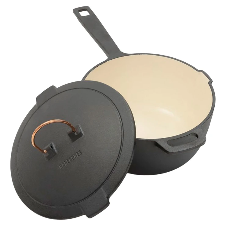 • Barebones Kastrull kombinerar den smidiga, non-stick emaljytan med den robusta hållbarheten hos gjutjärn på utsidan. Flytta den enkelt från kök till grill eller öppen eld – en perfekt kombination av funktion och stil i ett och samma kärl.