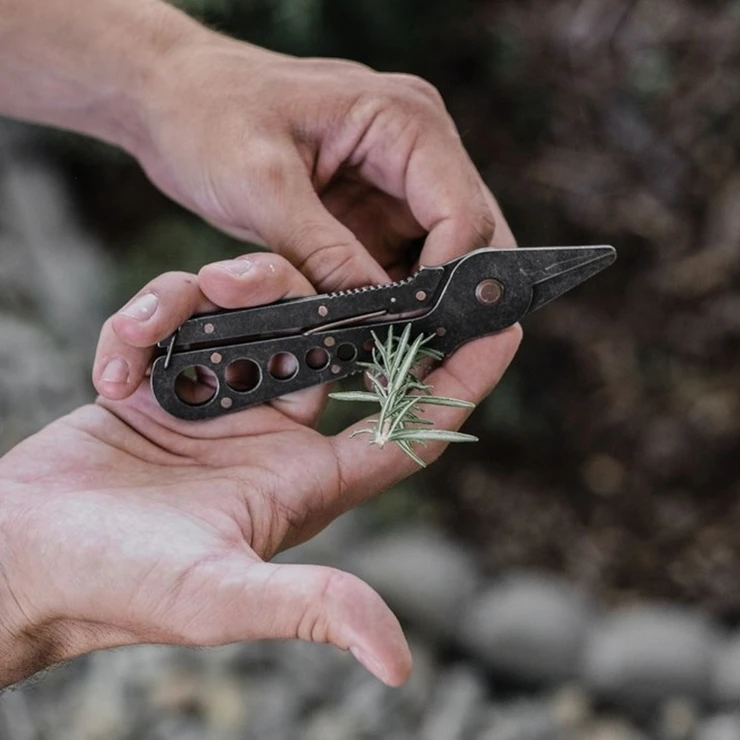 • Ett kompakt och mångsidigt verktyg som kombinerar örtsax och bladstripper i ett. Perfekt för att skörda färska kryddor i trädgården eller förbereda ingredienser i köket. Klipp enkelt med den vassa saxdelen och dra sedan bort blad från stjälkar – från rosmarin och koriander till kål och gröna blad.