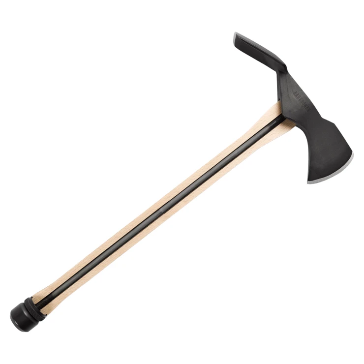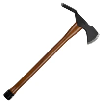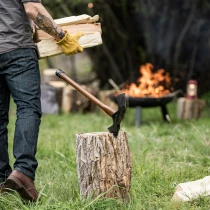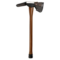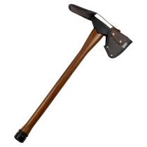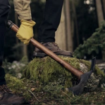 • Yxans stålskärna går igenom hela träskaftet och säkras med en avtagbar sexkantsbult för enkel åtstramning och underhåll. Den horisontella mattock-eggformen gör yxan mångsidig – lika effektiv för huggning och klyvning som för att gräva, röja rötter eller forma diken. Den stålklädda pommel-änden fungerar dessutom som hammare vid behov.