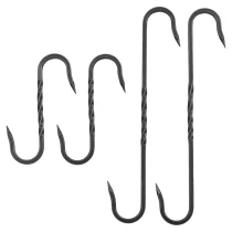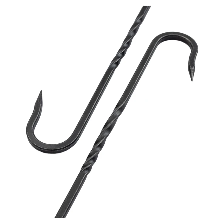 • Oavsett om du justerar höjden på din gryta eller hänger kött över öppen eld, erbjuder detta S-formade krokset flexibilitet och styrka för alla typer av eldlagning. Perfekt för rökning, torkning och upphängning av mat, men också för att justera höjden på kokkärl vid grillning. De vassa ändarna tränger lätt igenom kött eller grönsaker, och det robusta stålet är enkelt att rengöra och förvara.