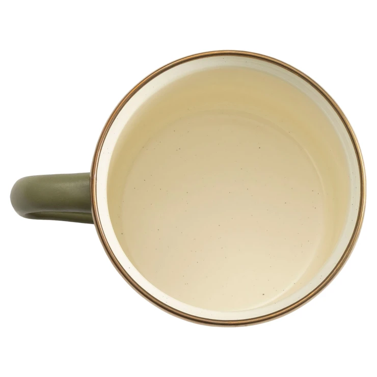 • Tvåtonsdesignen förenar en blank, vitprickig insida med en matt utsida. Den solida stålkärnan och den rosttåliga, värmehärdade glasytan ger hög slitstyrka och lång livslängd. Den bronsliknande kanten i rostfritt stål tillför ett elegant och sofistikerat utseende som blir vackrare med tiden.