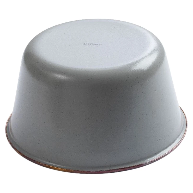 • Tvåtonsdesignen förenar en blank, vitprickig insida med en matt utsida. Den solida stålkärnan och den rosttåliga, värmehärdade glasytan ger hög slitstyrka och lång livslängd. Den bronsliknande kanten i rostfritt stål tillför ett elegant och sofistikerat utseende som blir vackrare med tiden.