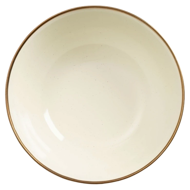• Tvåtonsdesignen förenar en blank, vitprickig insida med en matt utsida. Den solida stålkärnan och den rosttåliga, värmehärdade glasytan ger hög slitstyrka och lång livslängd. Den bronsliknande kanten i rostfritt stål tillför ett elegant och sofistikerat utseende som blir vackrare med tiden.