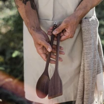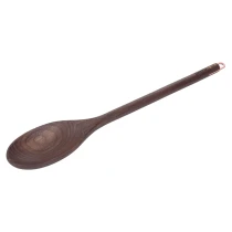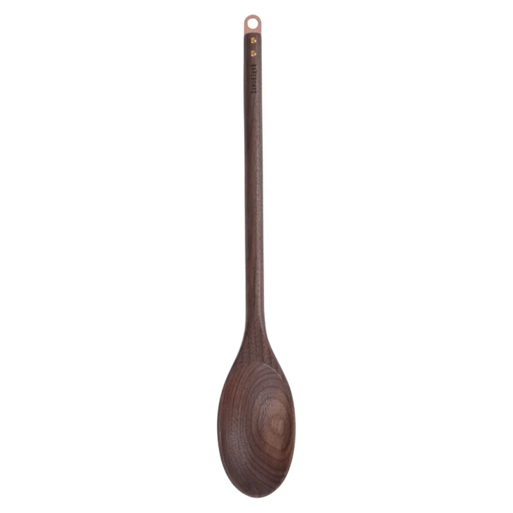 • Elegant matsked i svart valnöt med kopparfärgade detaljer – perfekt för att röra och servera både vid matlagning inomhus och utomhus. Den kombinerar naturlig skönhet med funktionell design och är särskilt lämplig för användning med gjutjärn och andra känsliga kokkärl.