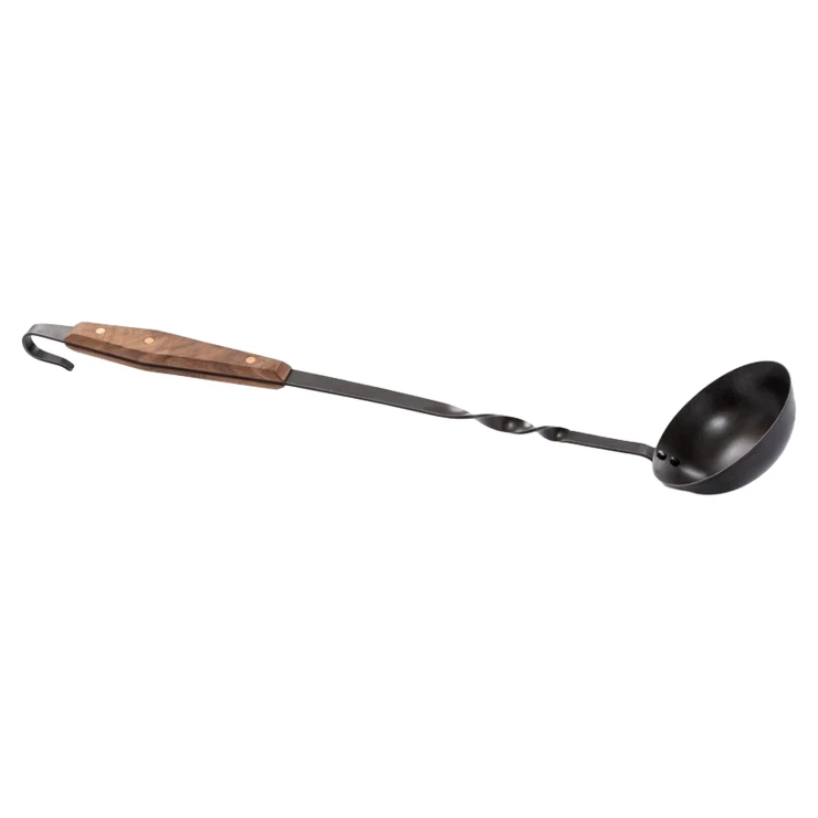 • Klassisk soppslev för matlagning över öppen eld – perfekt för att ösa såser, soppor och grytor. Tillverkad i handsmitt, svartoxiderat rostfritt stål och har ett naturligt valnötshandtag som håller sig svalt även vid hög värme.