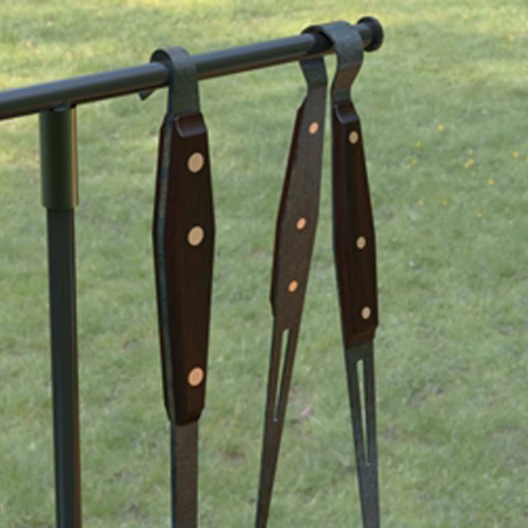 • Utvecklad tillsammans med Barebones professionella kockar som arbetar över öppen eld. Den extra långa designen ger bättre komfort och säkerhet när du arbetar runt eld och glöd.