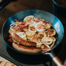 • Kolstål kräver mycket lite daglig skötsel, likt gjutjärn. Skölj, värm och olja in efter varje användning.