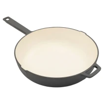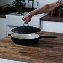 • Emaljerad insida. Gjutjärnsutsida. Världens mest mångsidiga emaljerade gjutjärnsstekpanna.