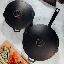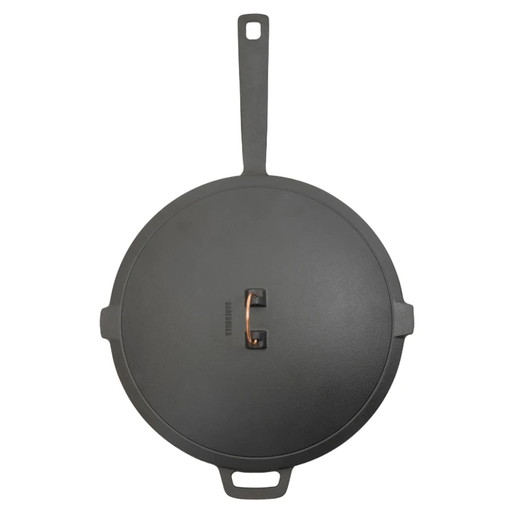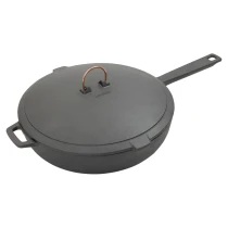 Djupa väggar, konvext lock och 30 cm diameter gör detta till en sann allroundpanna. Perfekt för att bryna, steka, koka, sjuda, pochera, ånga, bräsera eller glasera. En verklig kökskompanjon som alltid är redo för nästa äventyr, oavsett om du lagar mat hemma eller vid elden.