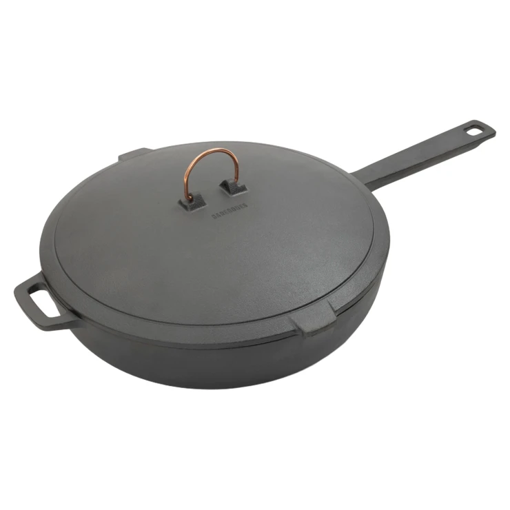 • Barebones Stekpanna kombinerar den lätta hanteringen av en slät, non-stick emaljyta med den oöverträffade hållbarheten hos gjutjärn på utsidan. Flytta den enkelt från kök till grill eller öppen eld – denna stekpanna är byggd för att möta alla matlagningsbehov, från snabba vardagsrätter till långkok.