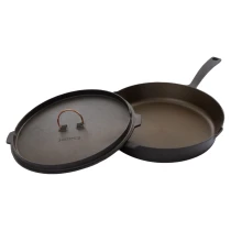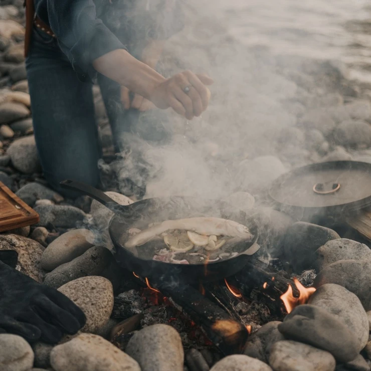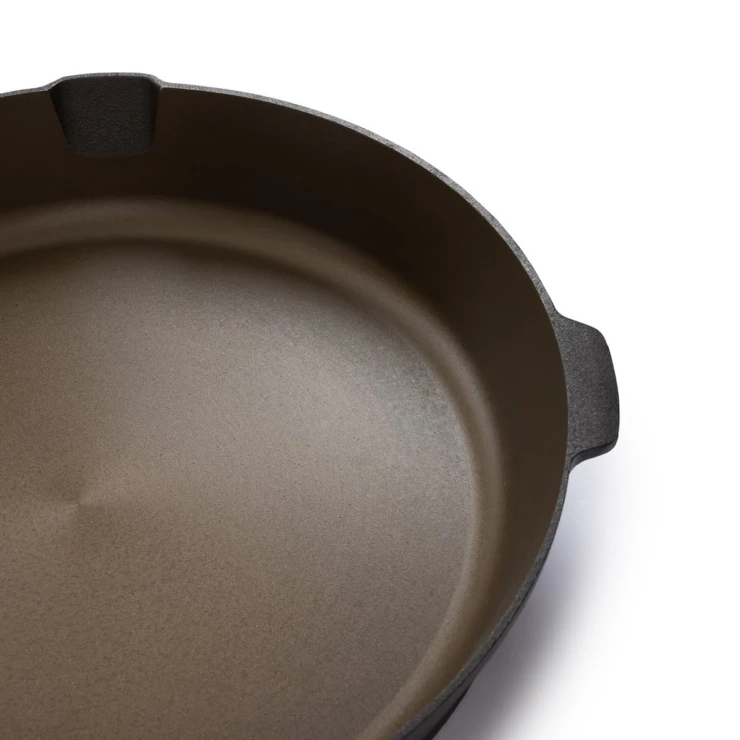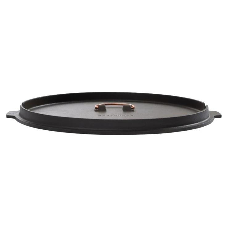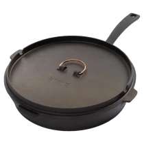 • Lyxig stekpanna i gjutjärn inspirerad av japansk design och framtagen för matlagning över öppen eld. Med sitt medföljande lock i Dutch Oven-stil, polerad insida, jämn värmefördelning och eleganta kopparinslag är detta en dröm för alla matentusiaster. Pannan är förbehandlad med ekologisk solrosolja och redo att användas direkt ur förpackningen.