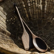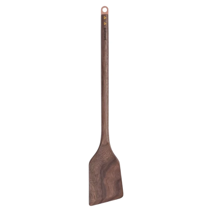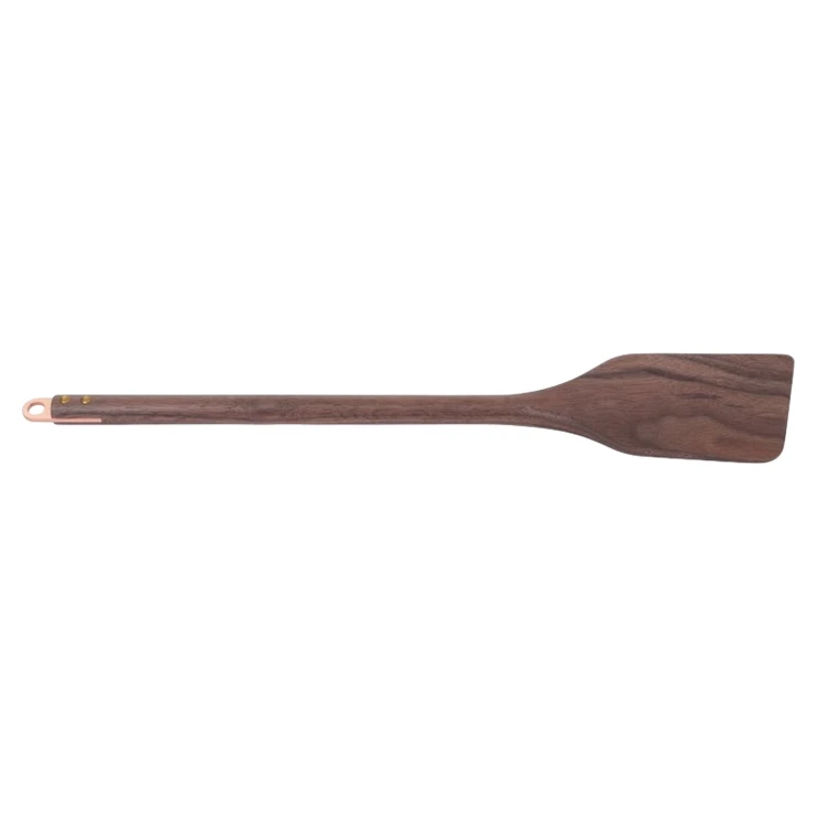• Spaden är säker att använda med repkänsliga kokkärl som gjutjärn, emalj, glas, non-stick och porslin. Den naturliga träytan och kopparpläterade upphängningsöglan gör den lika funktionell som elegant.