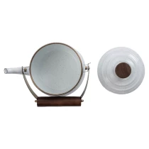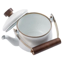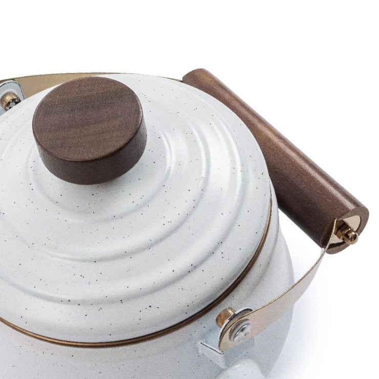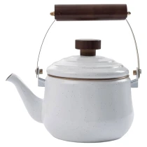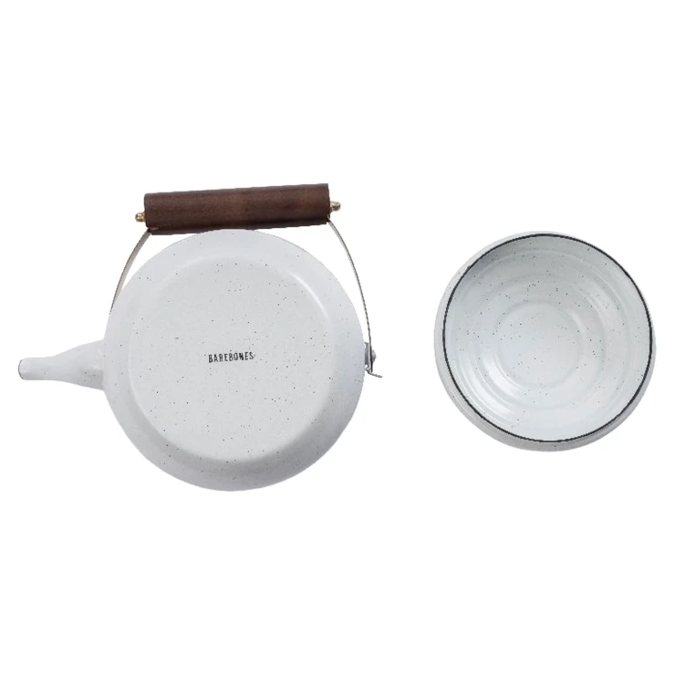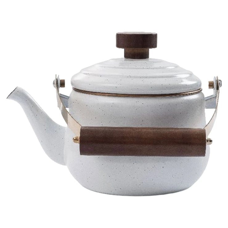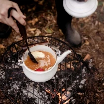 • Den emaljerade tvåfärgade tekannan kombinerar robust funktionalitet med tidlös design. Med sitt vackra, massiva handtag i valnöt och dragknopp i samma trä i köket som praktisk på campingturen. Perfekt för att koka vatten till kaffe, te eller varm choklad – eller för att sjuda buljong och varma drycker.