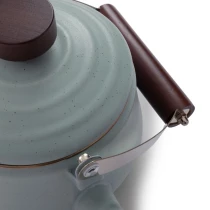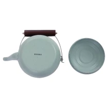 • Den emaljerade tvåfärgade tekannan kombinerar robust funktionalitet med tidlös design. Med sitt vackra, massiva handtag i valnöt och dragknopp i samma trä i köket som praktisk på campingturen. Perfekt för att koka vatten till kaffe, te eller varm choklad – eller för att sjuda buljong och varma drycker.
