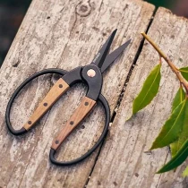 • Tillverkade i värmebehandlat rostfritt stål och utrustade med ett slitstarkt handtag i valnöt, är dessa saxar vatten- och rosttåliga samt byggda för år av daglig användning. Ett oumbärligt redskap för varje trädgårdsälskare.