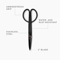 • De rundade handtagen ger bekvämt grepp och extra hävkraft vid tyngre uppgifter, medan den smala trimsaxen gör det enkelt att arbeta med precision bland blad och blommor. Den ambidextra utformningen gör dem lika lättanvända för höger- som vänsterhänta. Vatten- och rosttålig konstruktion säkerställer lång livslängd – perfekta för både hobbyodlare och professionella trädgårdsmästare.