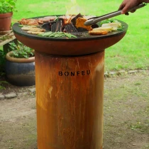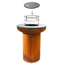 BonFeu Set med BonBiza Eldstad Cortenstål, Subbel Stålring för Grill & Grillgaller Rund